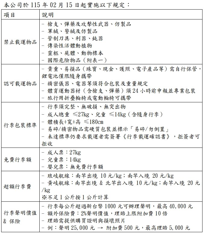 115年度小三通行李載運許可公文